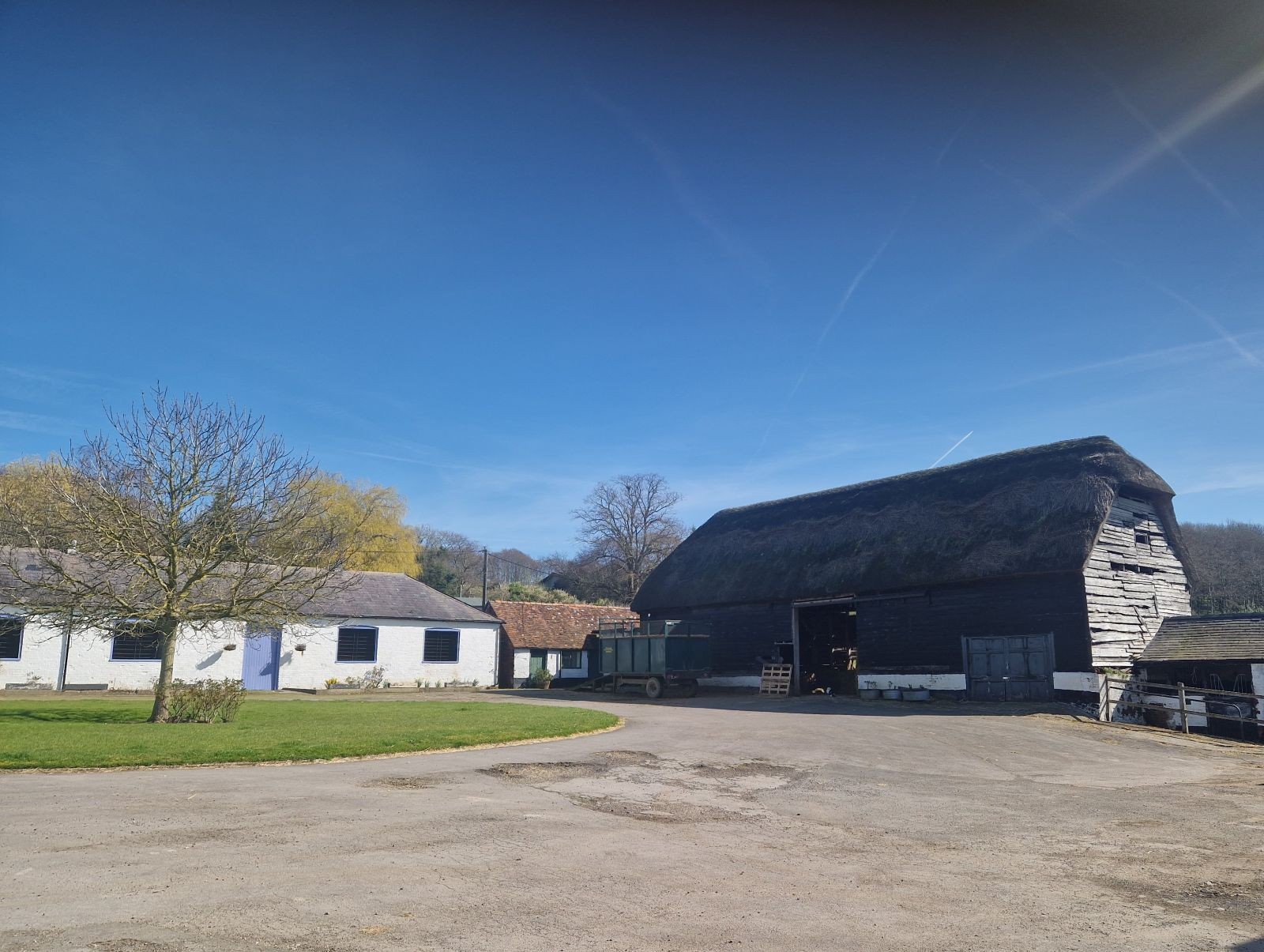 Saxon House Stables is a wonderful timber barn under a thatched roof within a courtyard setting. 5 bays long, with a timber frame on the brick plinth, this can be transformed into a lovely house overlooking the open centrepiece of the racehorse training yard. In addition to the barn, the adjoining office and tack room can be incorporated into this remarkable design, to enable really spacious reception areas and 3 bedroom suites. Full detailed planning permission and Listed Building Consent was granted in December 2025 allow for the 'Conservation and alteration of Grade II Listed Barn for residential use and associated works'. Please note, the development is subject to payments under the West Berkshire Community Infrastructure Levy. For more information and the full planning application, please refer to Application No.25/01380/FUL. The boundary of the site is being corrected by a s.73 application.