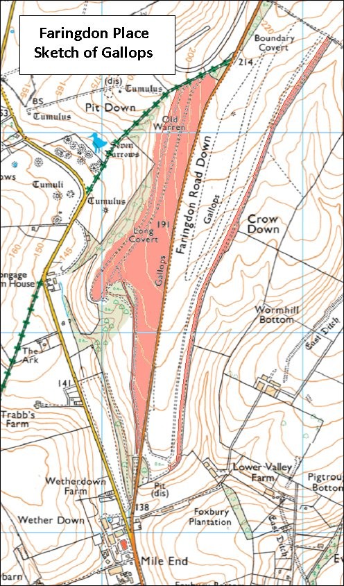 The exceptional grass gallops, again both sides of the Faringdon Road are both 9 furlongs long.