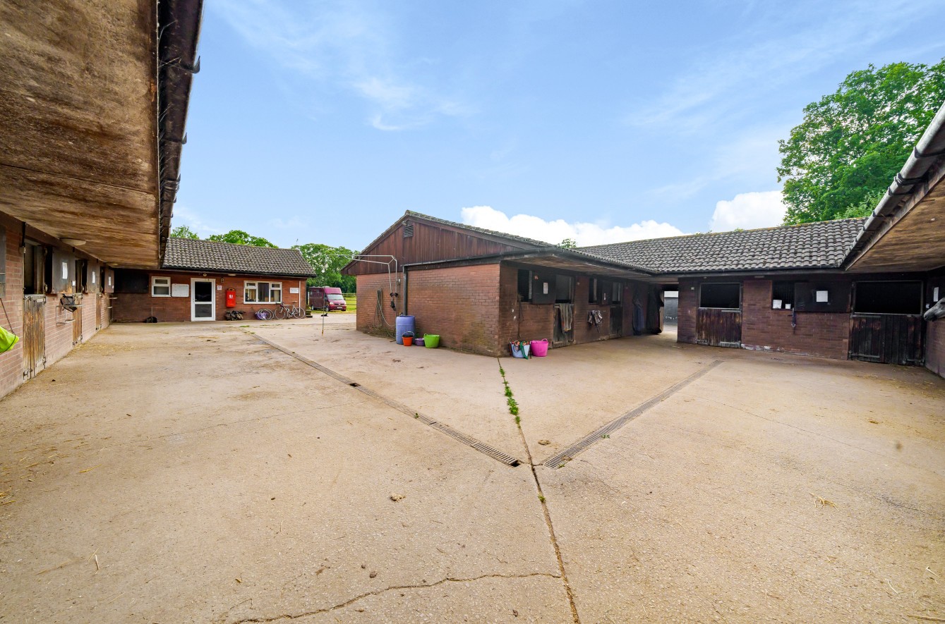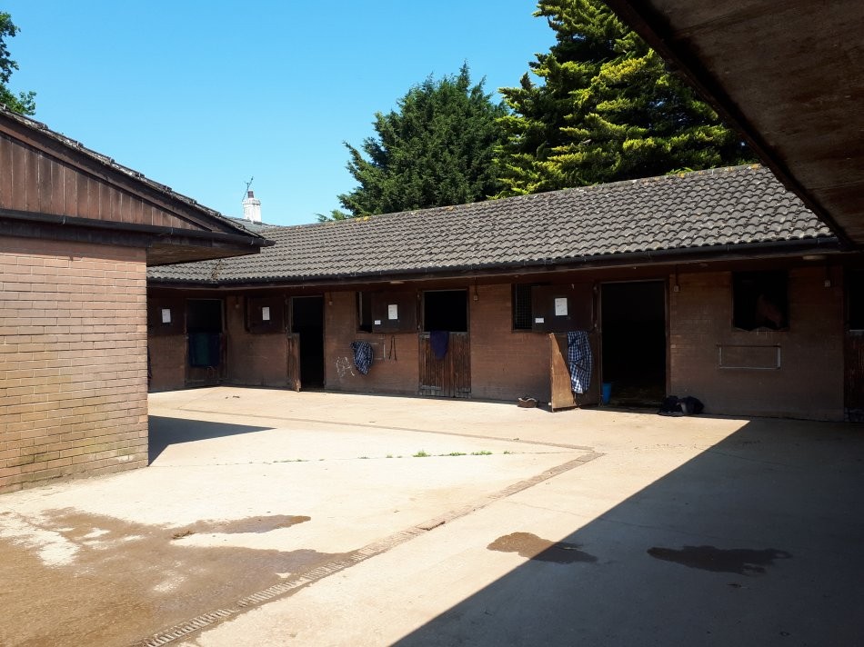 There are 30 boxes in total. The main yard of 20 boxes has a tack room, feed room, and rug room. Behind the main yard is a range of 10 further boxes.