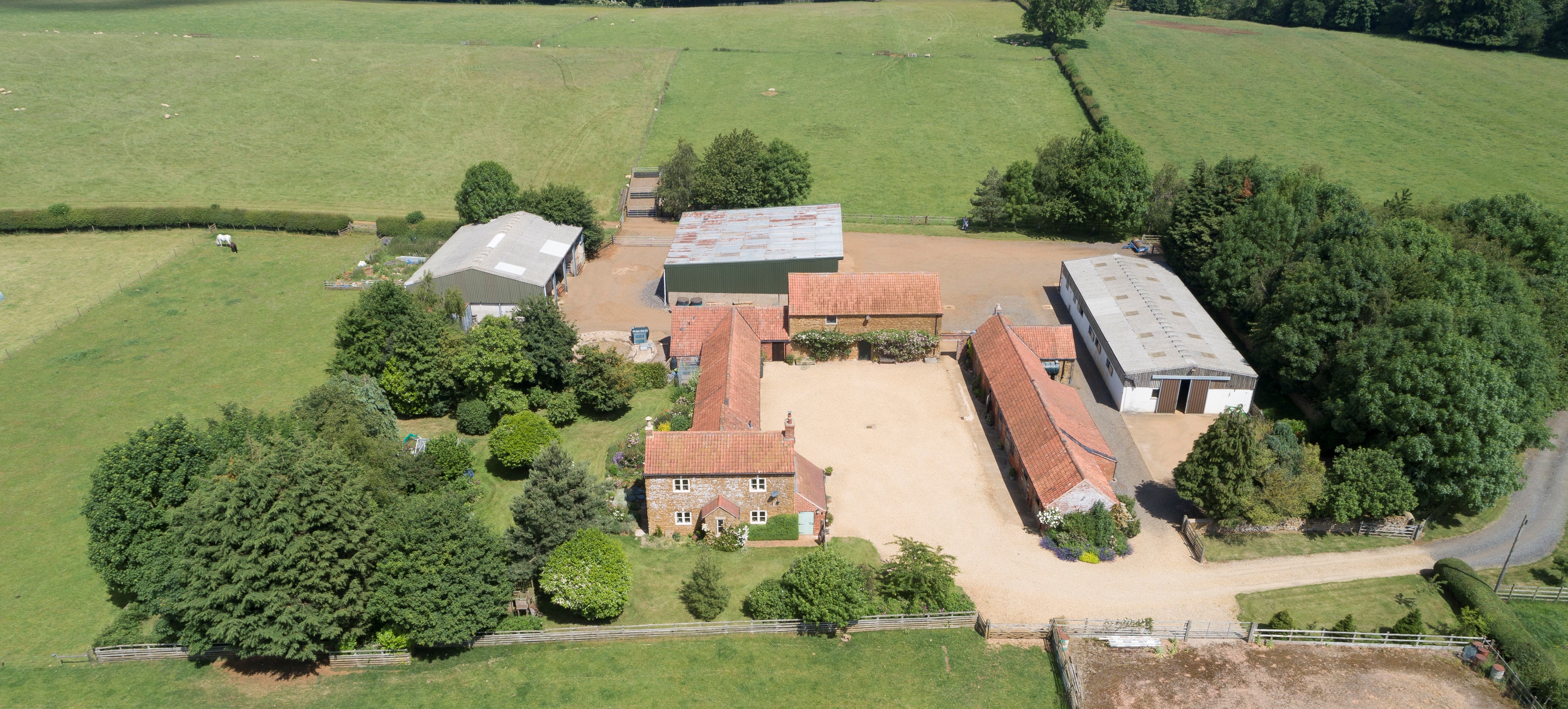 Hall Farm has been part of Goadby Hall since it was sold by the Belvoir Estate in 1920. At the core of the Vale of Belvoir, for some time it was a successful thoroughbred stud farm, operated by David Botterill who kept up to 14 mares at Hall Farm and bred 2007 Royal Ascot Jersey Stakes winner, Tariq, among other Group race successes. With predominately level paddocks over ironstone, this is exceptional horse rearing ground, relatively free draining, and mineral rich. The land would lend itself well to a commercial stud farm or diverse small holding.