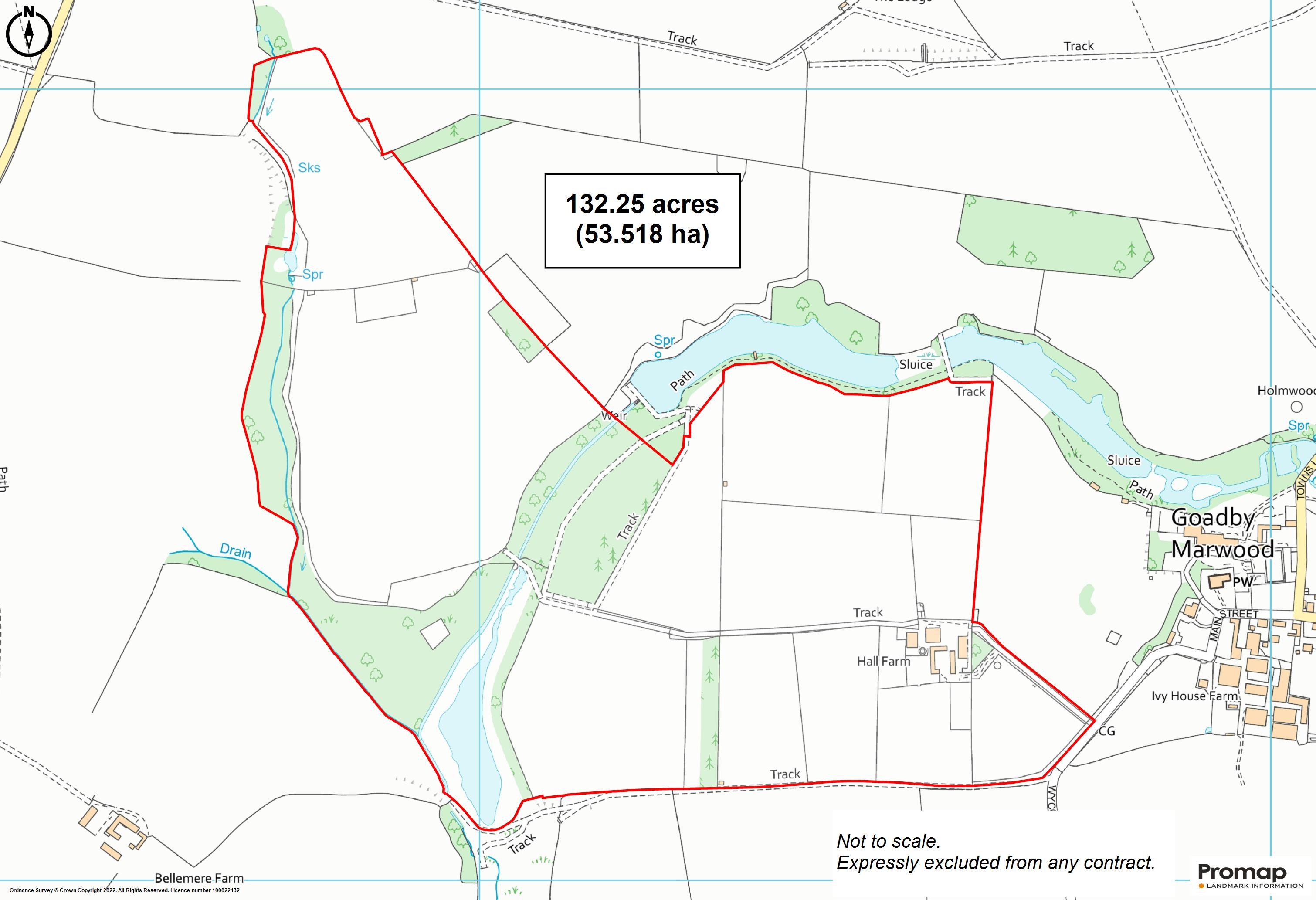 The land extends to approximately 132 acres (53.52 hectares) in total. This comprises about 99.75 acres (40.37 hectares) of pastureland, 24.85 acres (10.06 hectares) of woodland, 0.79 acres (0.32 hectares) of arable land and 5.48 acres (2.22 hectares) of water.