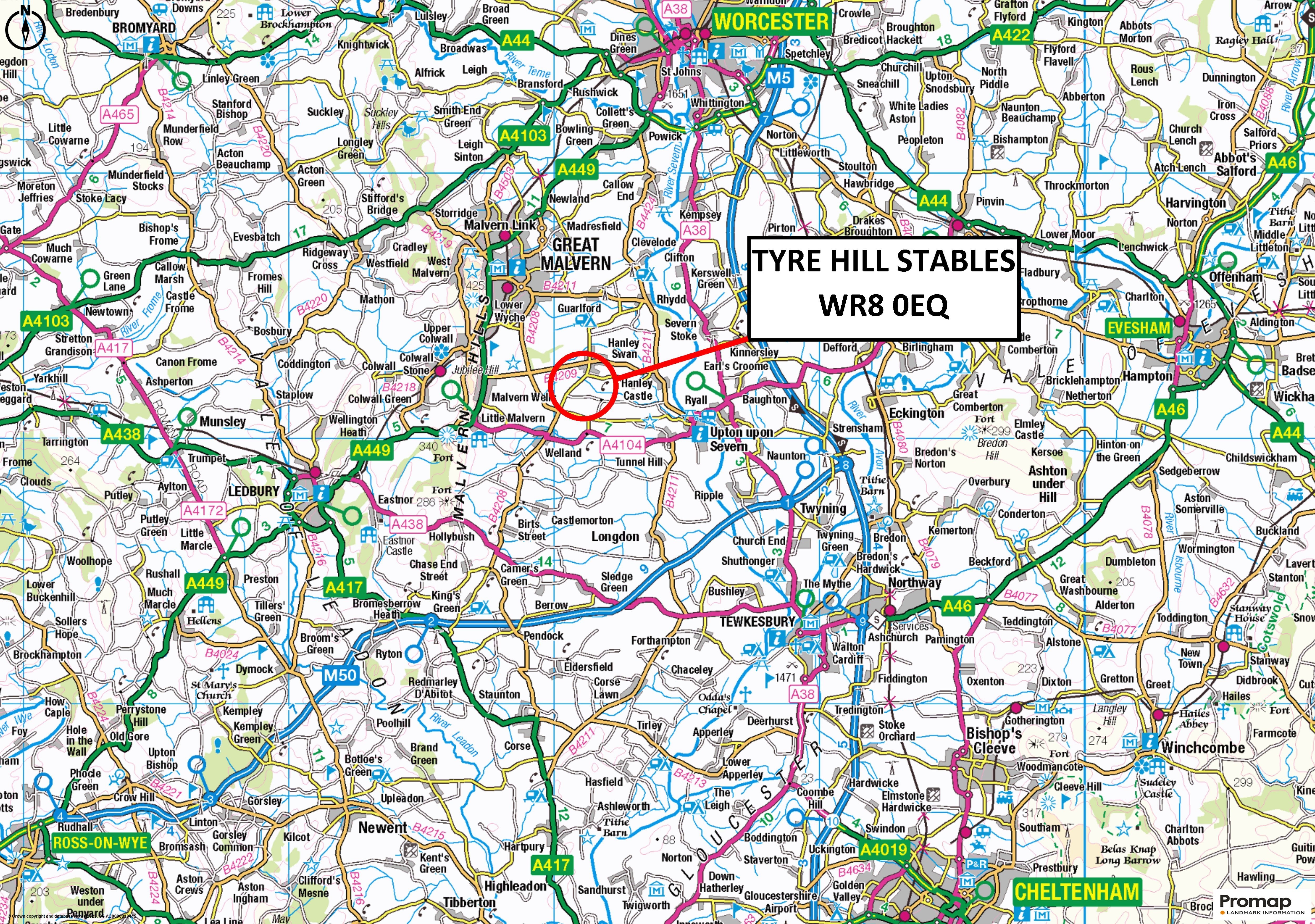 9 miles from Junction 8 on the M5, Tyre Hill is in easy reach of Cheltenham and Worcester as well as the rest of the country. Train stations are at Great Malvern and Worcester Parkway; with Birmingham Airport being less than an hour away. The local towns and cities of Malvern, Ledbury, Worcester and Cheltenham all provide very good state and private schools.
